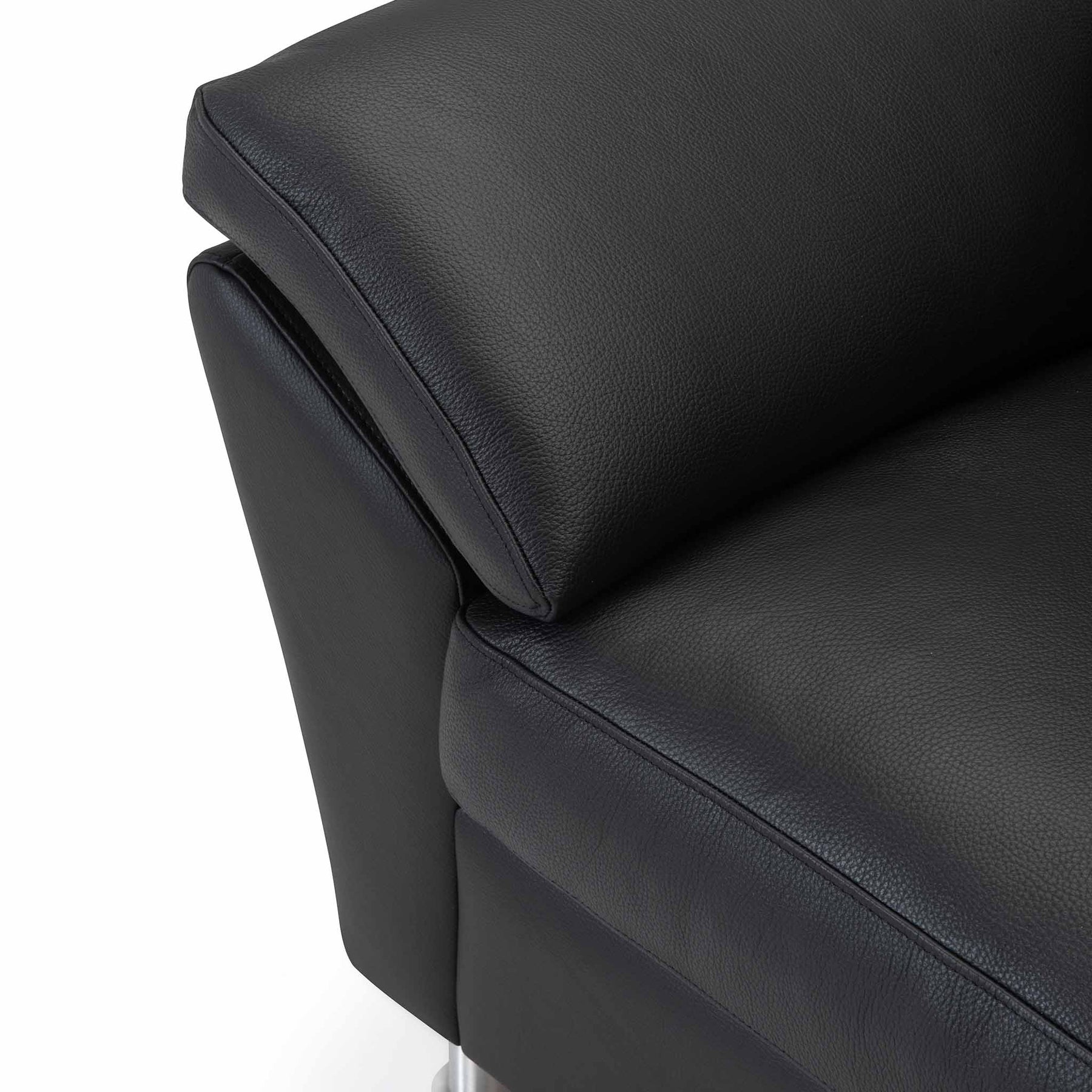 Det smukke design er betrukket med blødt, sort okselæder, og de brede armlæn giver dig ekstra støtte og en behagelig siddeoplevelse. De formstabile puder med koldskum sikrer, at du altid sidder godt – uanset om du slapper af alene eller nyder en aften med familie og venner. Puderne er formet af koldskum, som giver en fantastisk komfort.