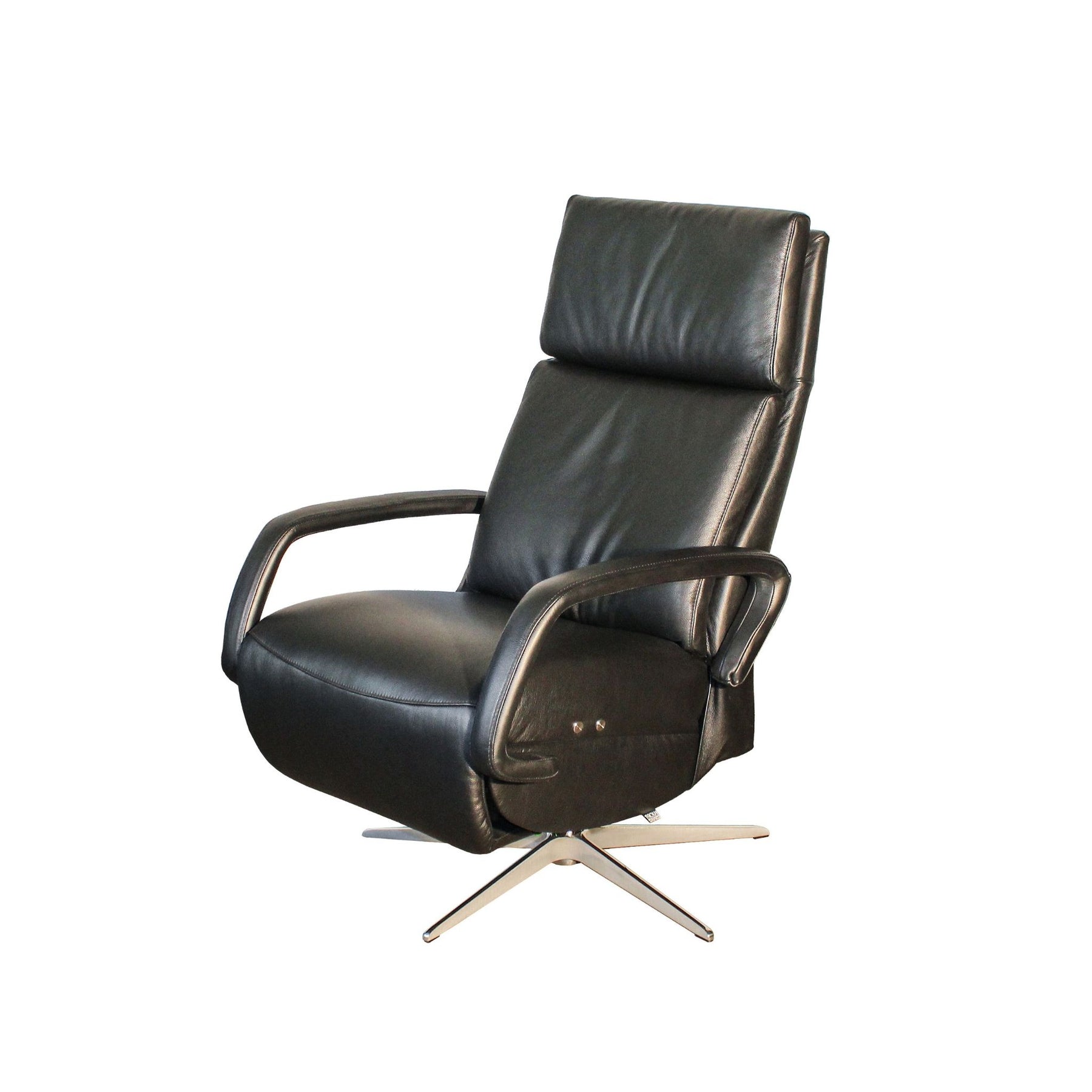 Drejø | Lænestol m. reclainer Sort semianilin læder