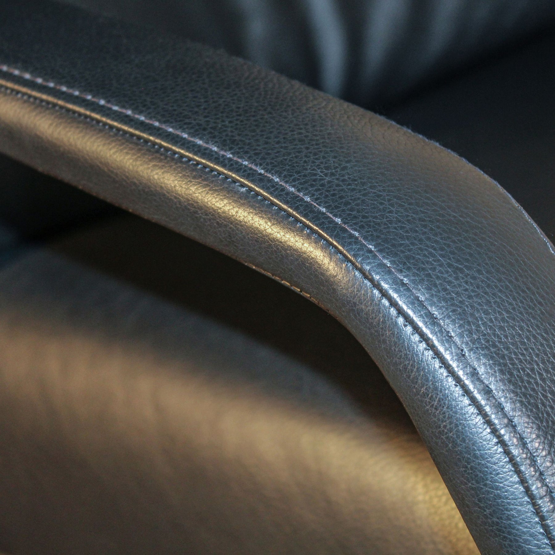 Stolen er betrukket med sort semianilin læder, et materiale kendt for sin holdbarhed og bløde overflade, som med tiden får en smuk patina. Den elegante sokkel giver stolen et moderne og let udtryk, der passer ind i mange boligstile.