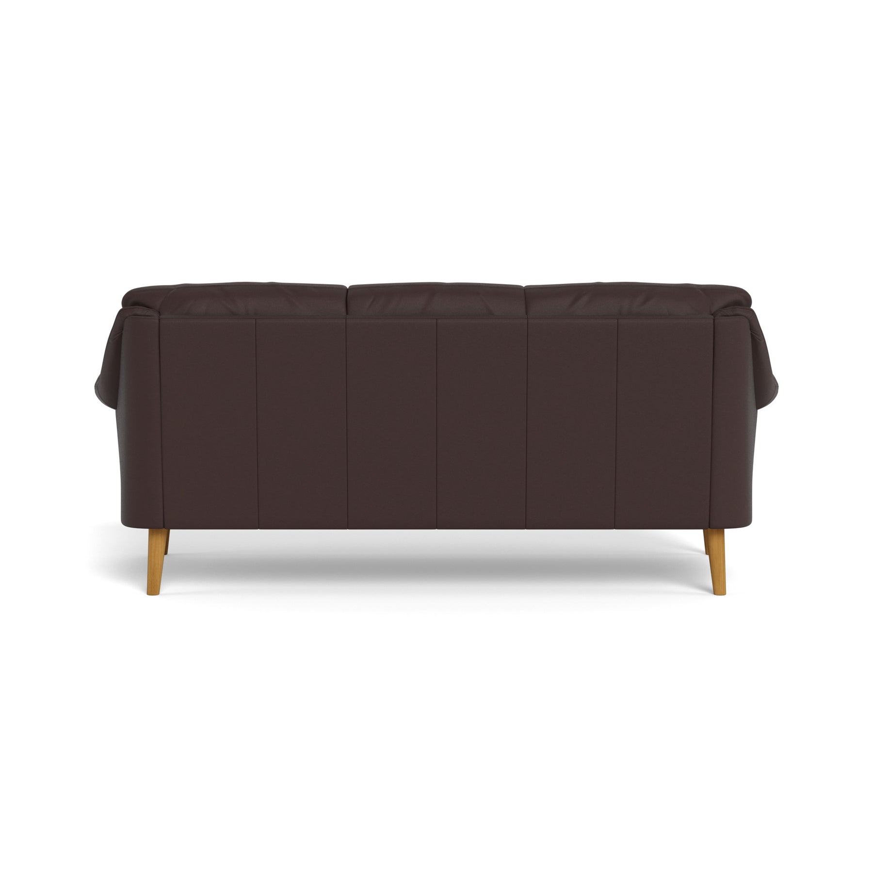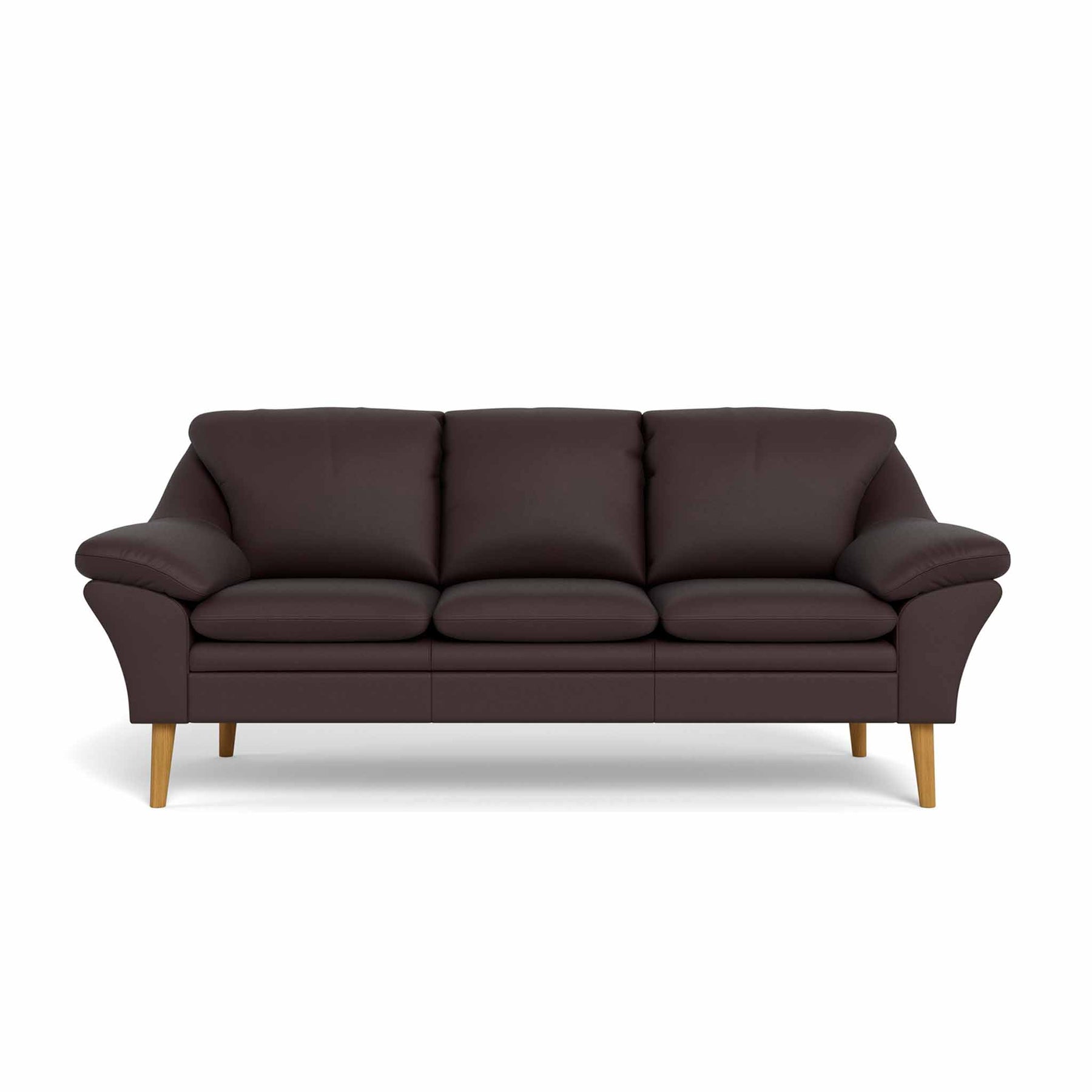 Det elegante læder kombineret med ben i naturolieret egetræ giver sofaen et varmt og tidløst udtryk, som passer perfekt i både små og store stuer.