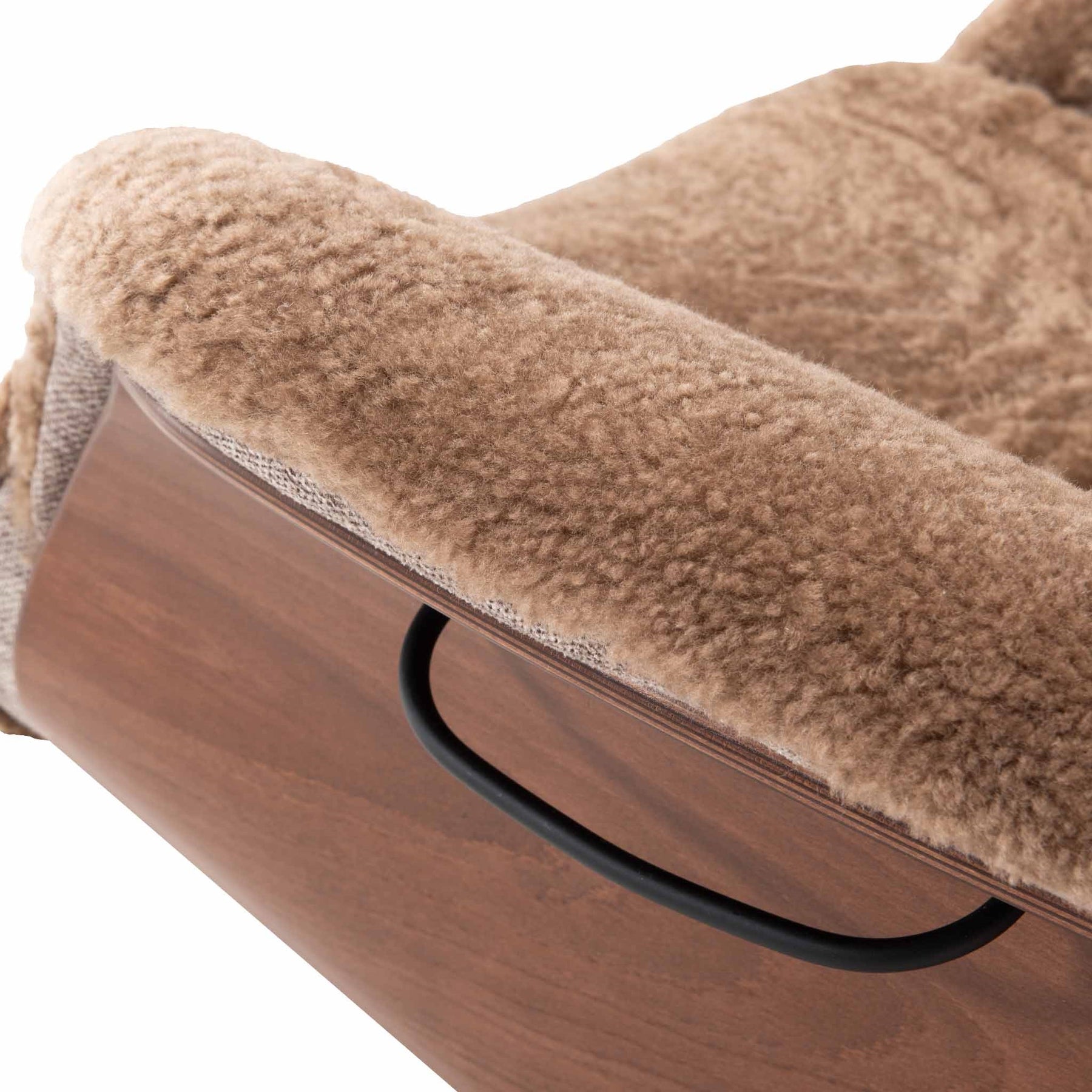 Med Golf Wood lænestol med fodskammel i ægte fåreskind fra Hjort Knudsen giver dig maksimal komfort og nordisk elegance i ét. Fåreskindet holder dig behageligt varm – uden at du får det for varmt.