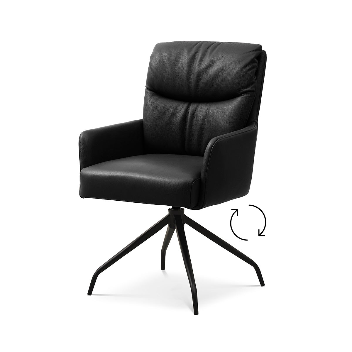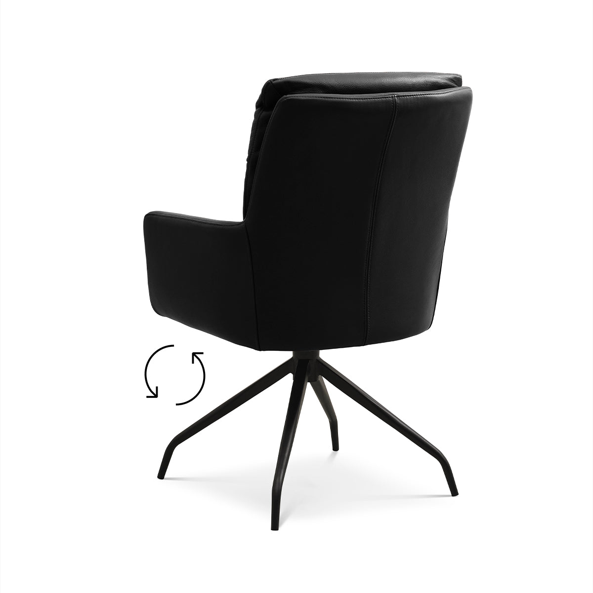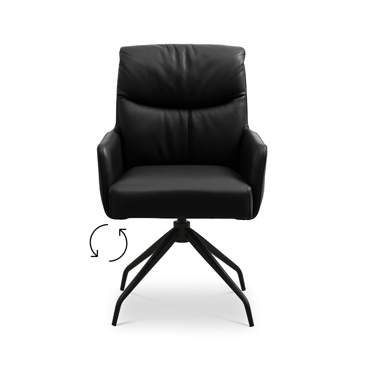 Med Lotus får du en behagelig spisebordsstol, der er perfekt til lange middage og hyggelige timer omkring bordet. Stolen er monteret med praktisk sort okselæder, og står på elegante sorte stålben med drejesokkel.