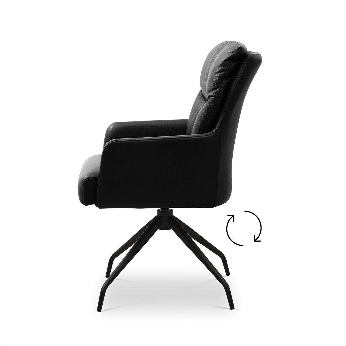 Drejefunktionen gør det nemt at komme til og fra bordet, og stolen drejer automatisk tilbage til udgangspositionen, så den altid står pænt.