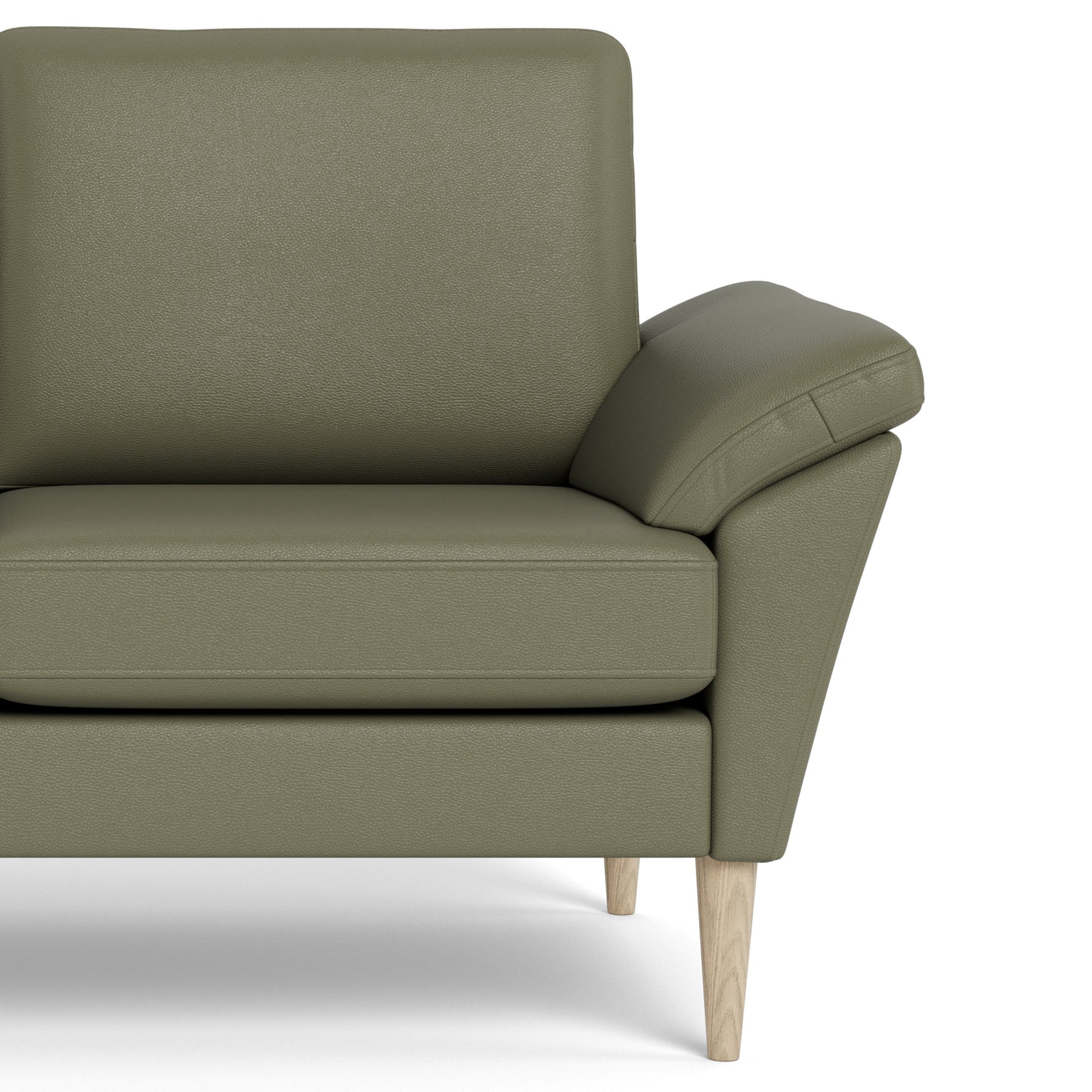Melby sofaen fås med to forskellige bentyper samt et bredt udvalg af stof- og læderfarver, så du nemt kan tilpasse udtrykket til din bolig. Her vist i grøn Trend læder.