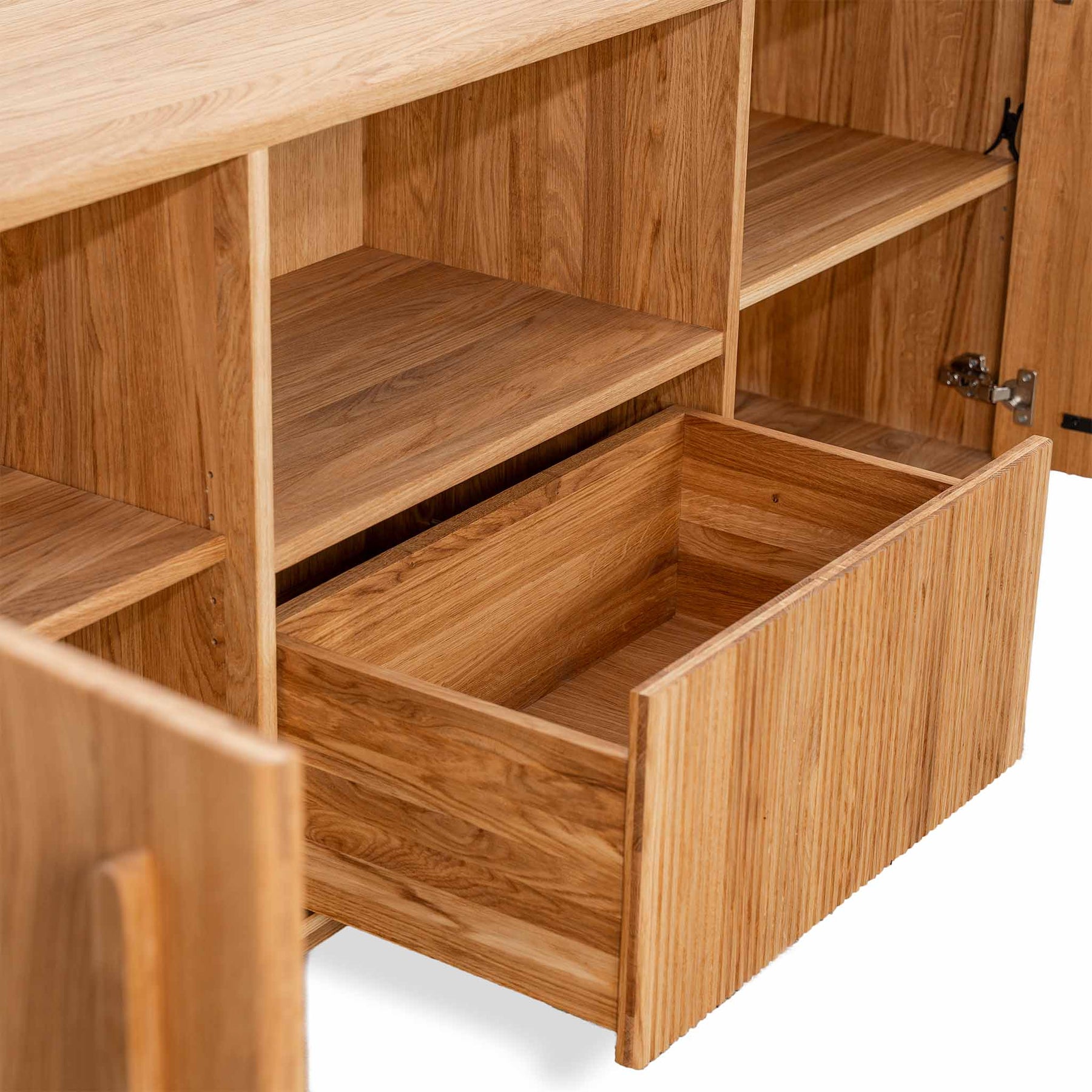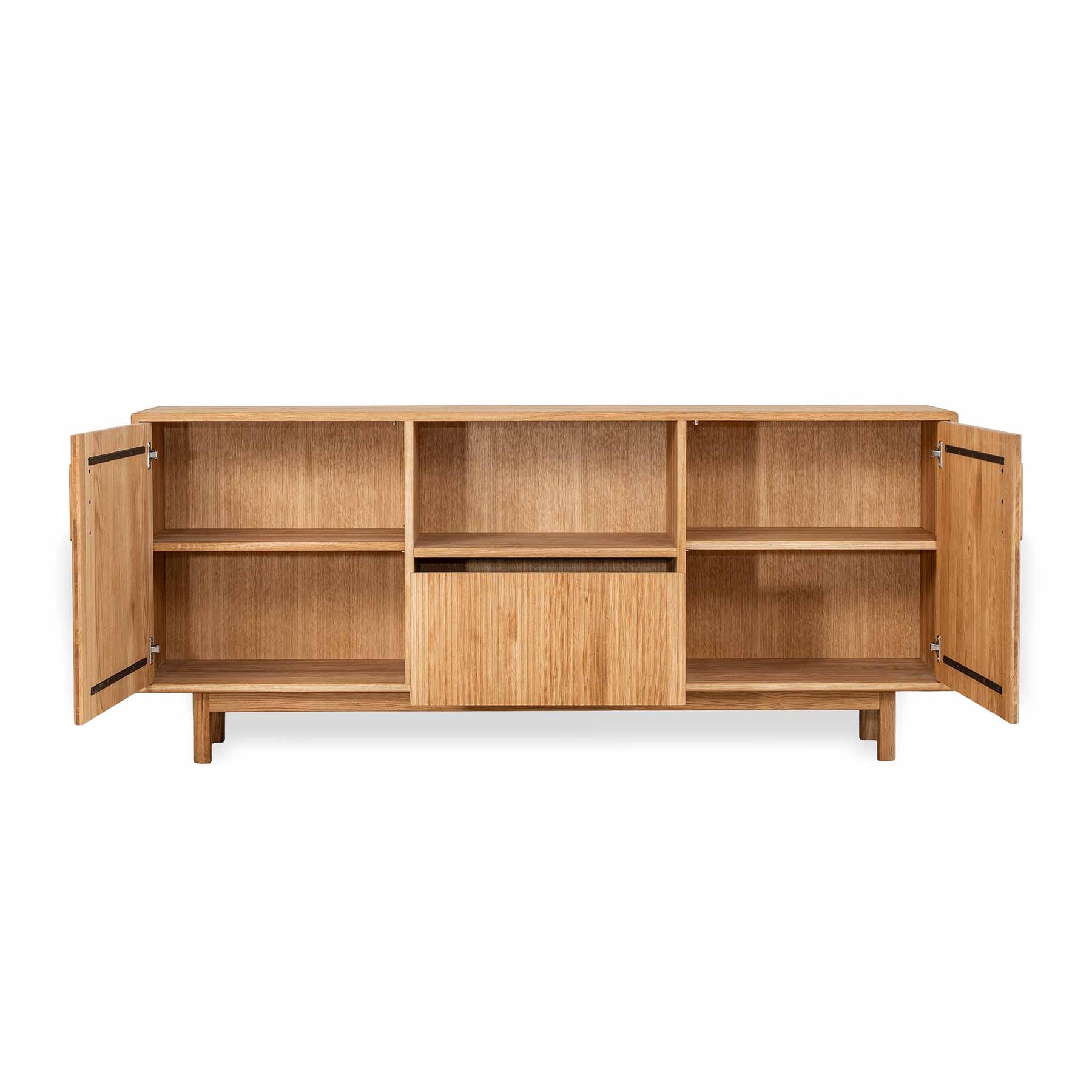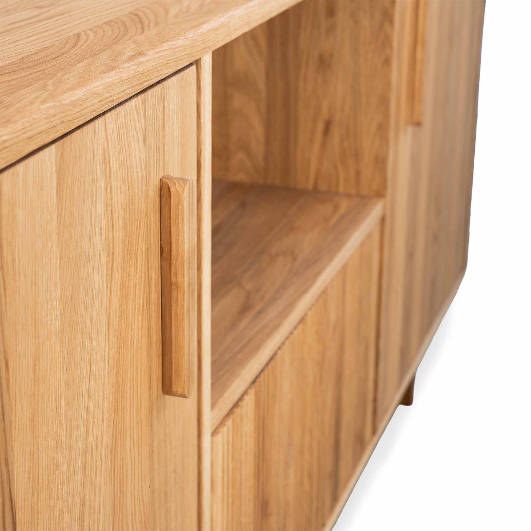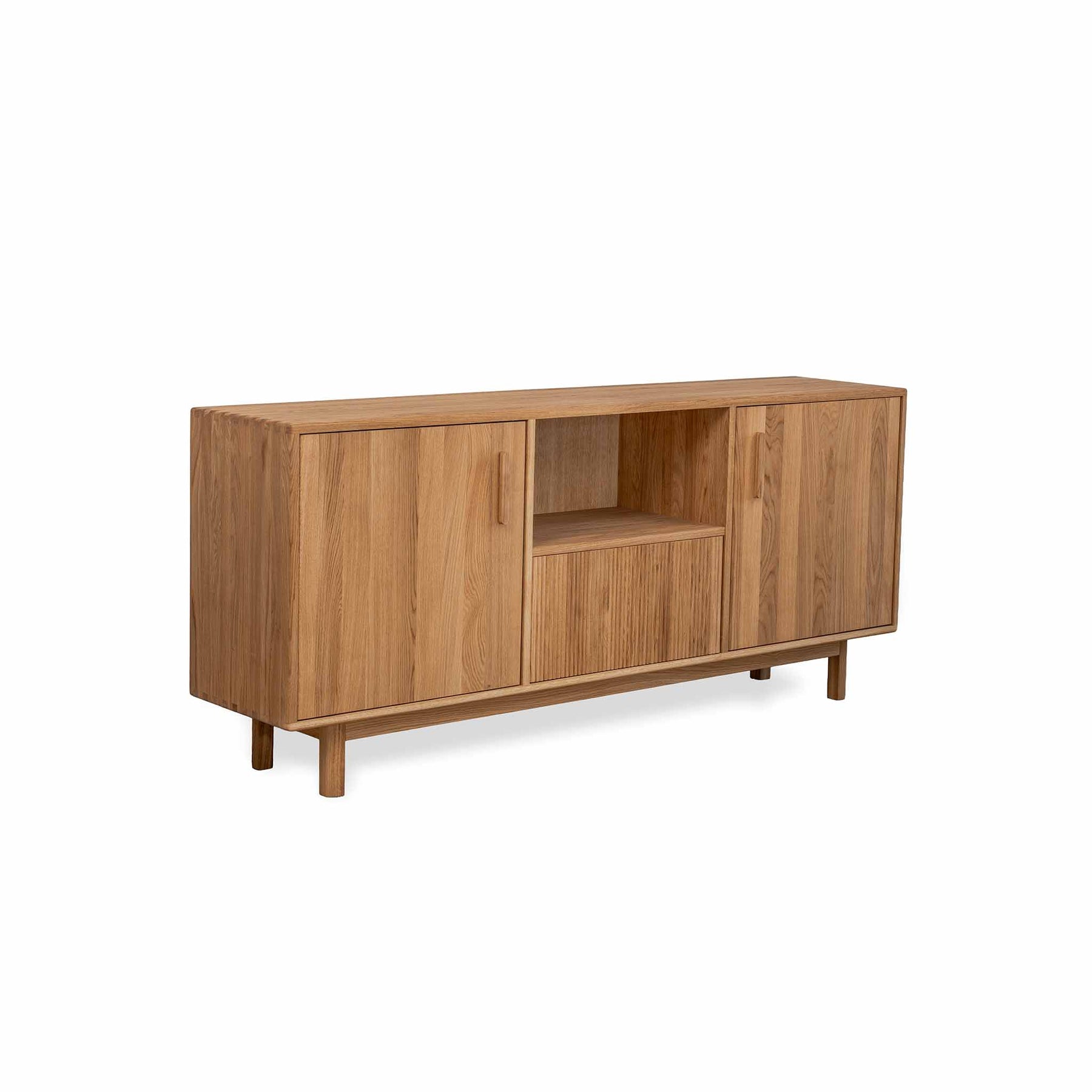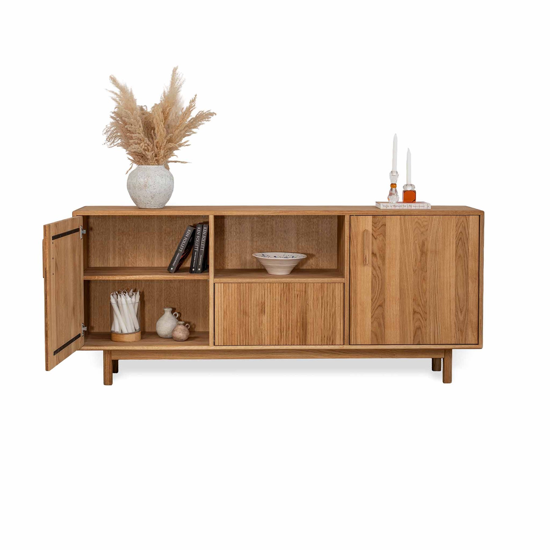 Options skænken fra Kristensen & Kristensen er skabt i massivt naturolieret egetræ, der giver møblet et naturligt og varmt udtryk. Med sit tidløse design og fokus på godt håndværk er skænken en funktionel løsning, som samtidig tilfører elegance til hjemmet.