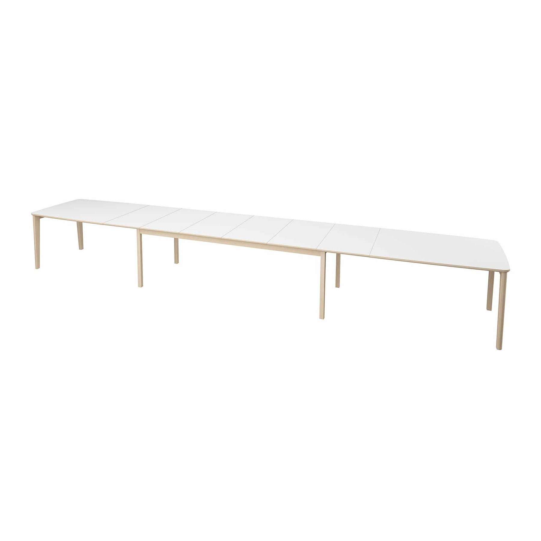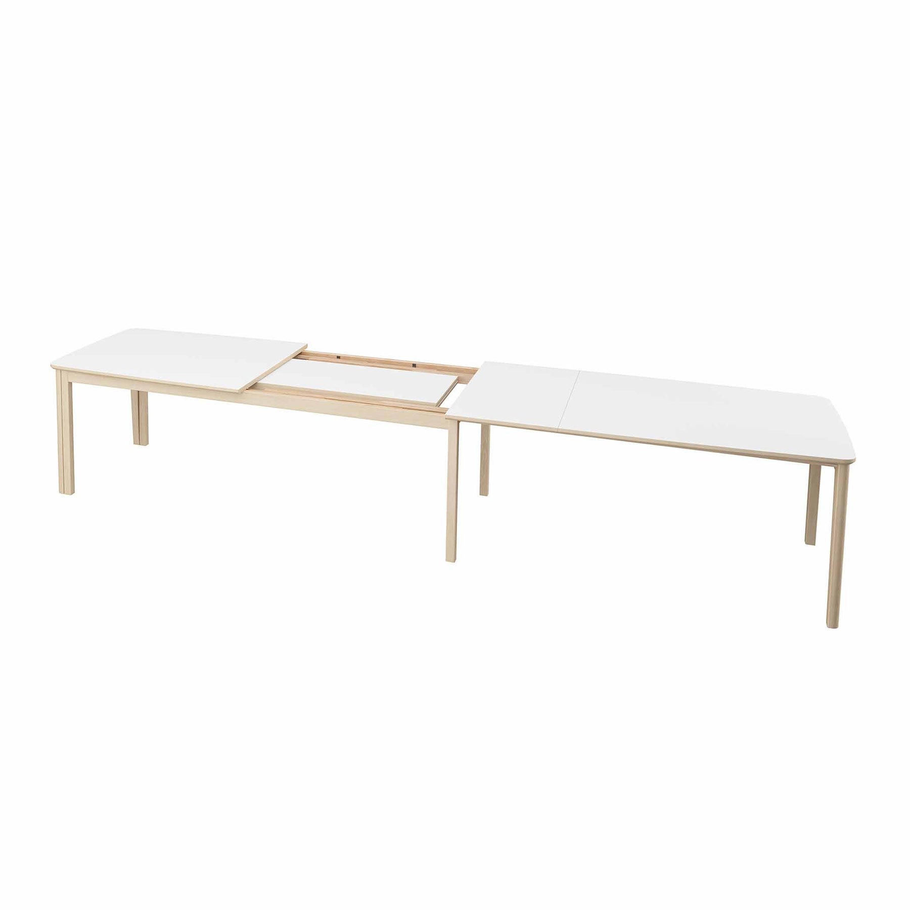 Bordet er udstyret med et solidt udtrækssystem og 3 tillægsplader (51 cm pr. stk.), som kan opbevares i bordets indbyggede magasin. Med tillægspladerne kan bordet udvides og rumme mellem 6 og 22 personer.