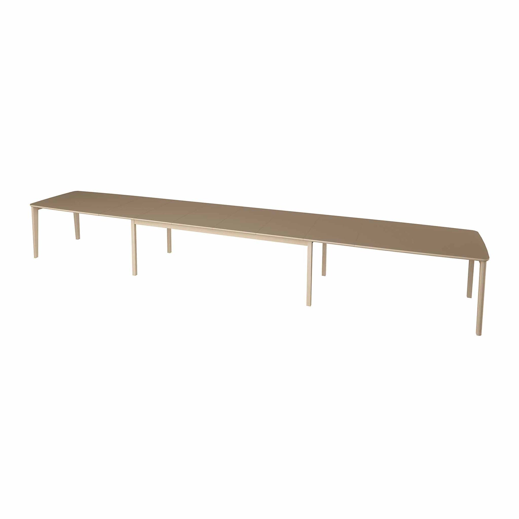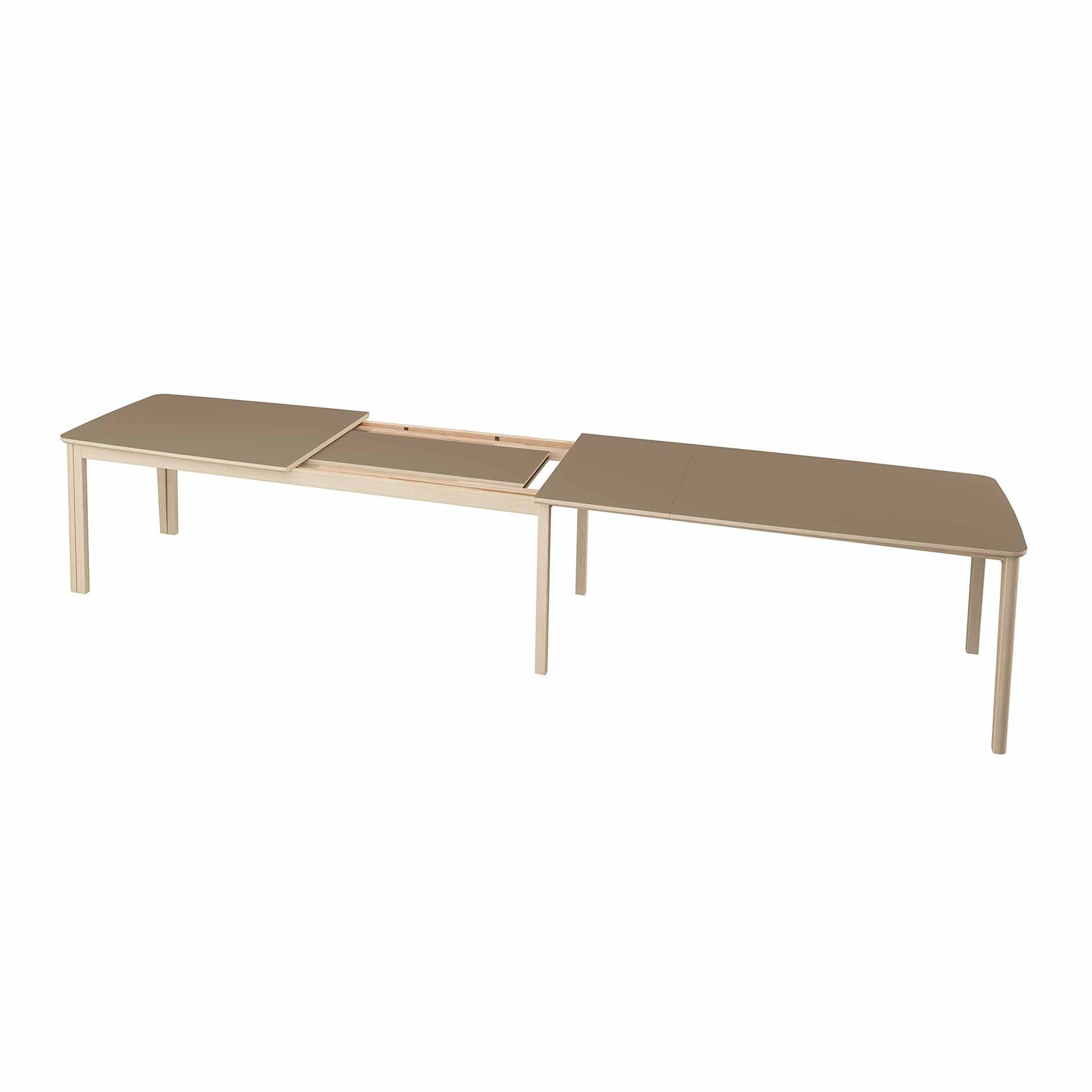 Bordet er udstyret med et solidt udtrækssystem og 3 tillægsplader (51 cm pr. stk.), som kan opbevares i bordets indbyggede magasin. Med tillægspladerne kan bordet udvides og rumme mellem 6 og 22 personer.