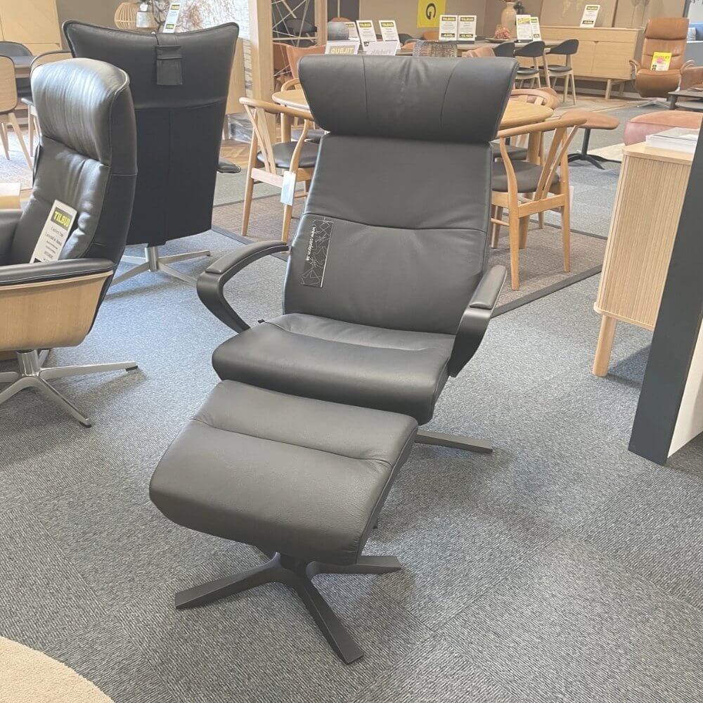 Style | Lænestol inkl. skammel Sort semianilin læder